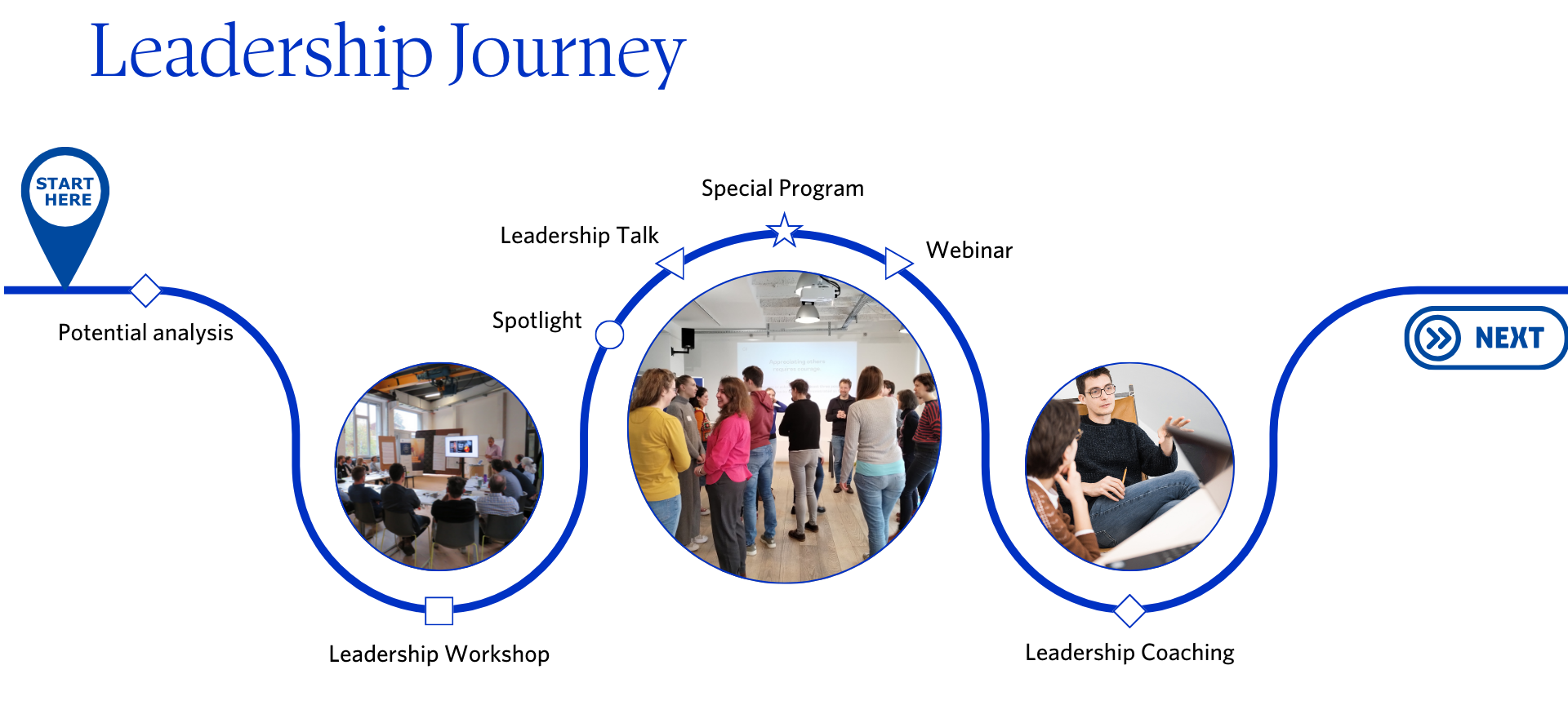 If you're unsure about which competencies or key areas you want to focus on, you can start by assessing your current position, such as through a potential analysis or individual coaching. From there, you can participate in group activities like workshops, training sessions, expert talks, or special programs, designed to address your specific challenges.